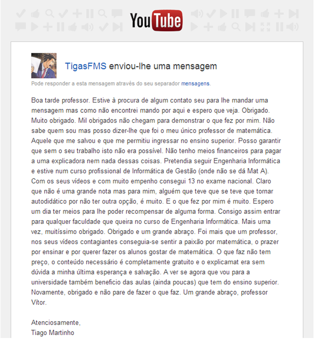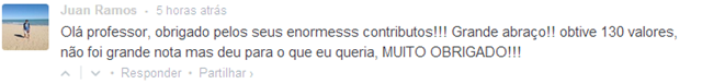"Olá professor, aproveito para lhe agradecer por toda a sua ajuda que